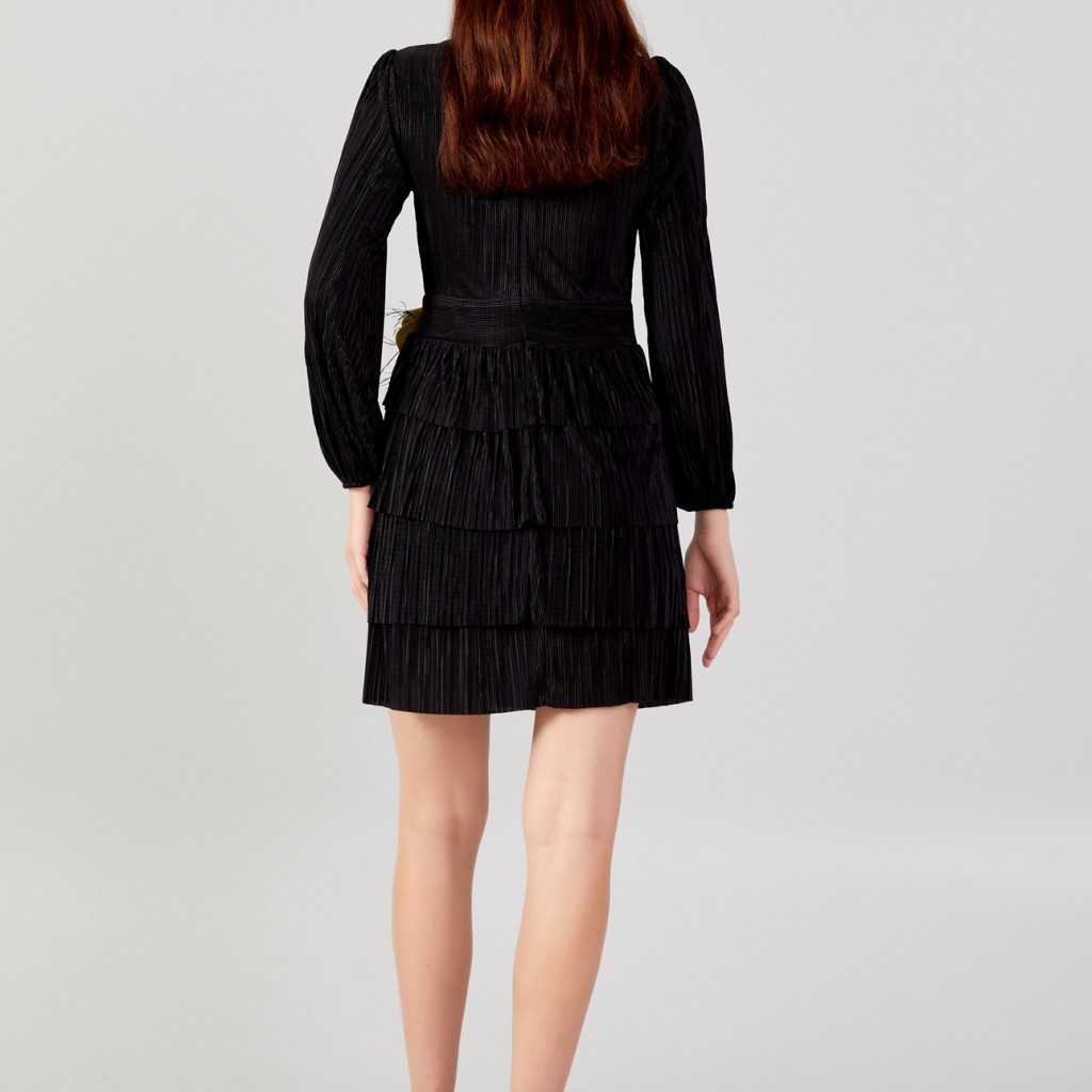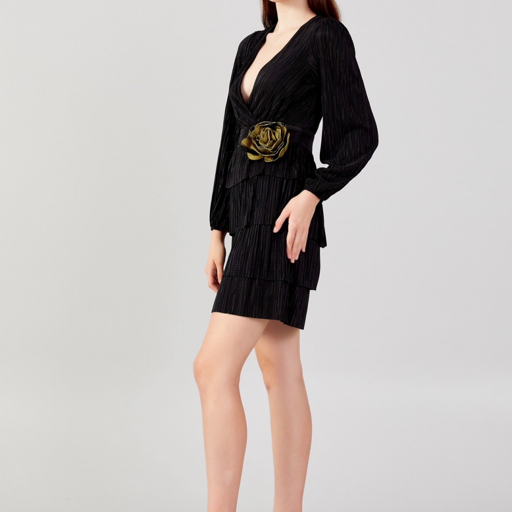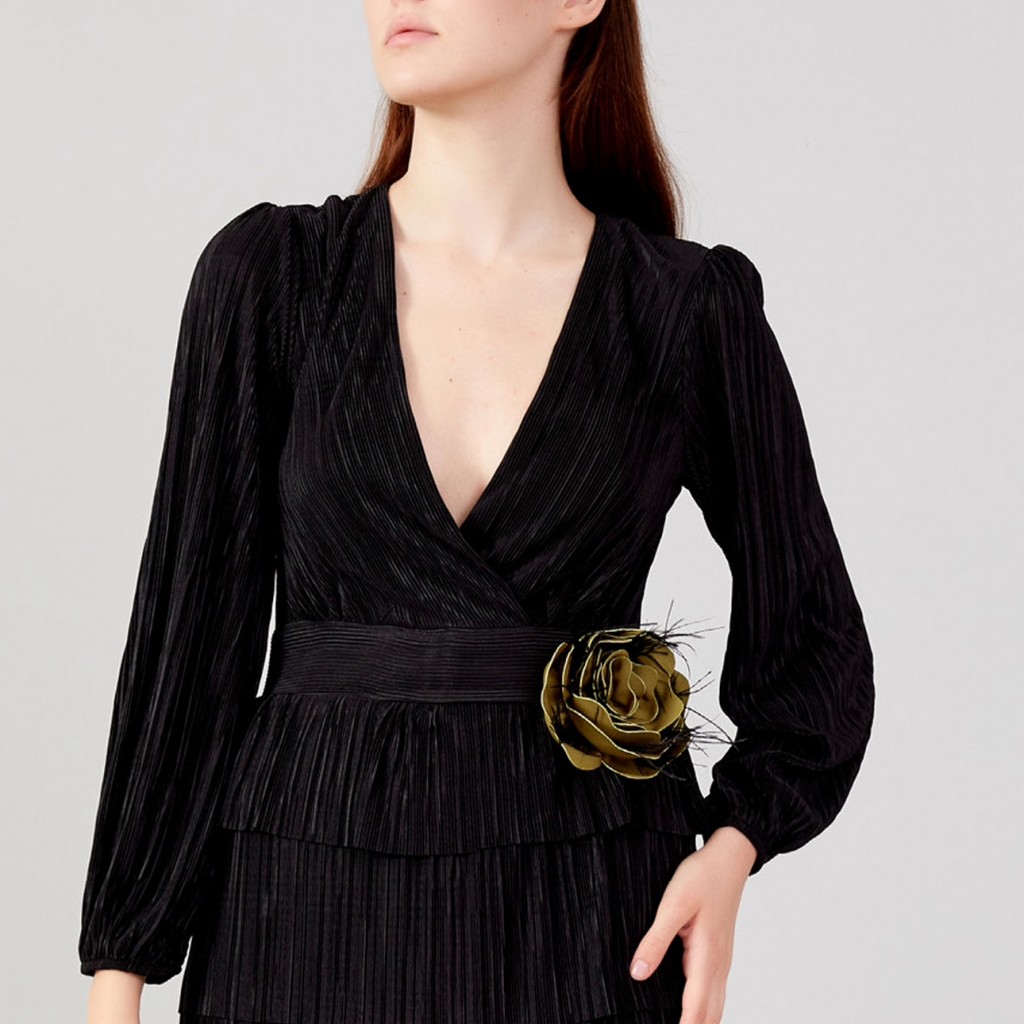 پیراهن پلیسه ای مینی وارداتی از برند مطرح ترکیه در دو رنگ مشکی و سرخابی با پارچه بسیار با کیفیت و سبک و گل پشت سنجاق برای تکمیل استایل