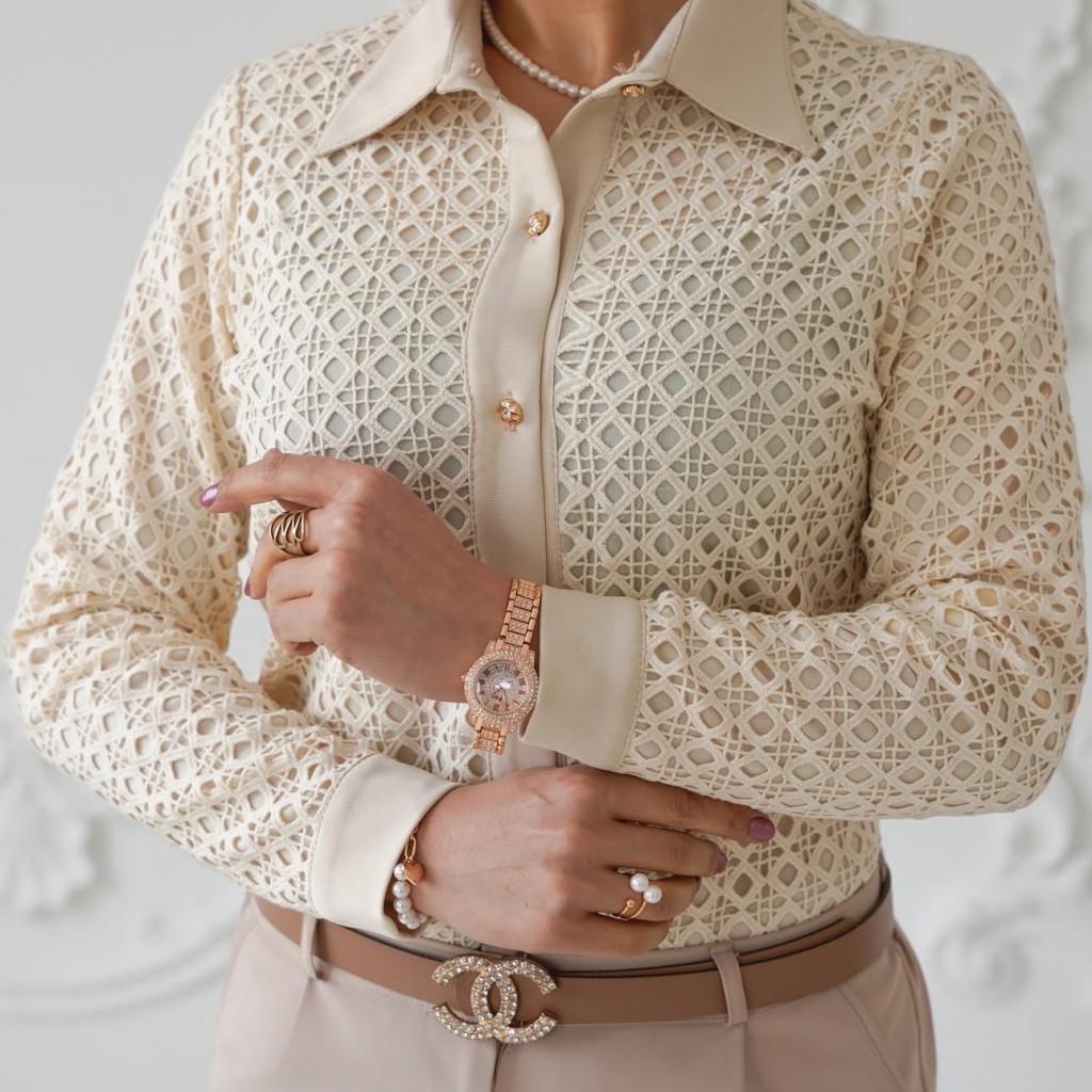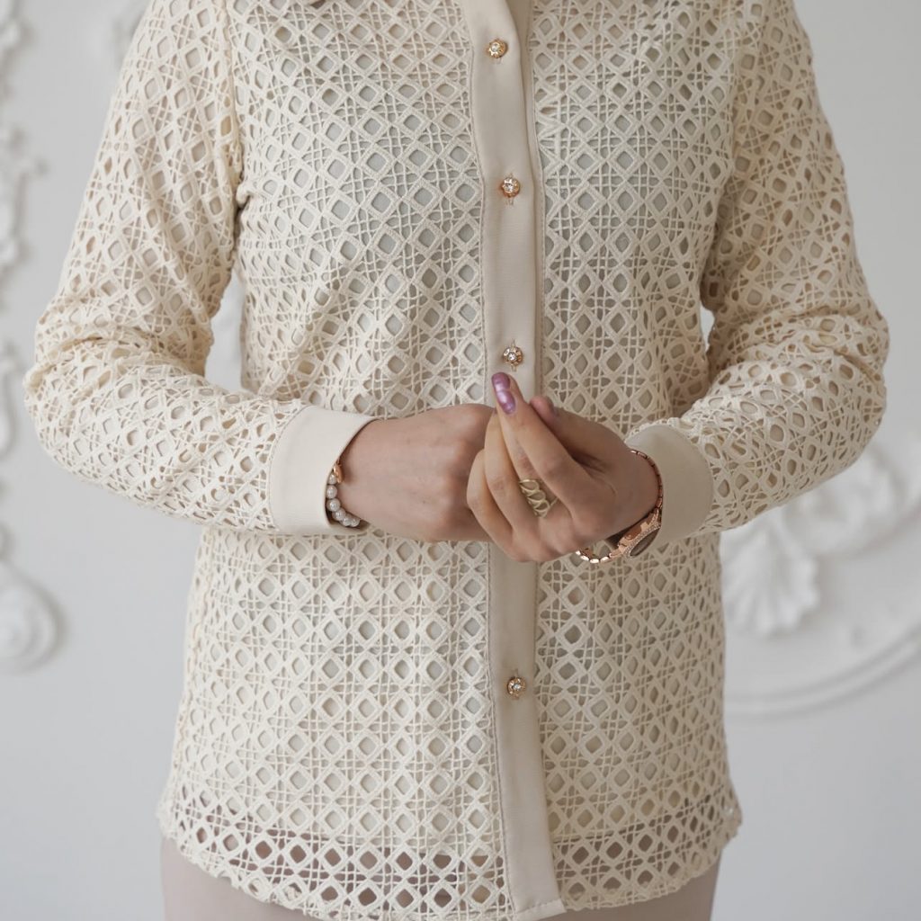 شومیز مجلسی با پارچه گیپور ،استردار ، جنس مچ و یقه ساتن ، شومیز جلو دکمه و وارداتی میباشد